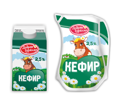 Кефир «Добрая Бурёнка» 2,5% 450гр и 900гр, п/п и кувшин