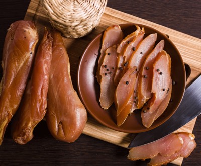- Органолептическими показателями — плотная консистенция, равномерный цвет, характерный аромат копчения