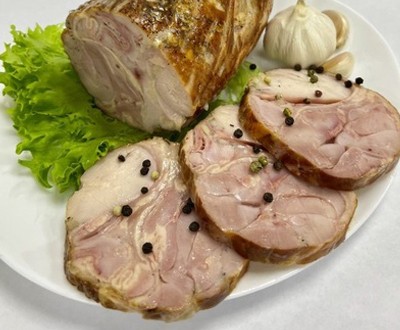 - Ветчина свиная «Славянская» — формованный деликатес из окорока