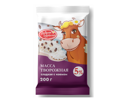 Масса творожная «Добрая Бурёнка» с изюмом 5% 200гр флоу пак