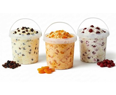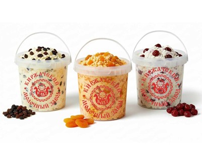 Киржачский МК делает творожную массу «Киржачская» в вёдрах по 3 кг — формат для кафе, буфетов и кондитерских, где продукт уходит быстро . Есть варианты 15% и 23% жирности с разными наполнителями: изюм, курага, вишня, цукаты, ванильная. В составе творог, сахар, сливочное масло, иногда заменитель молочного жира — это снижает цену.