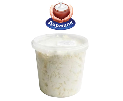 Дармилк поставляет творог весовой в коробах и вёдрах по 3-5 кг — формат для пекарен, кафе и заведений с собственным производством . Жирность чаще всего 9%, есть варианты на 18% для более жирных начинок. Творог пластичный, без крупных комков — легко размешивается в тесто для сырников, запеканок или начинки в пироги.