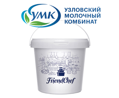 FriendChef — творог от Узловского МК, который делают под профессиональные кухни и пекарни. Идёт в вёдрах по 3 кг, жирность 9% по ГОСТ. Фасовка удобная: не нужно возиться с мелкими пачками по 200 грамм, но и не занимает полморозилки, как десятикилограммовый короб.