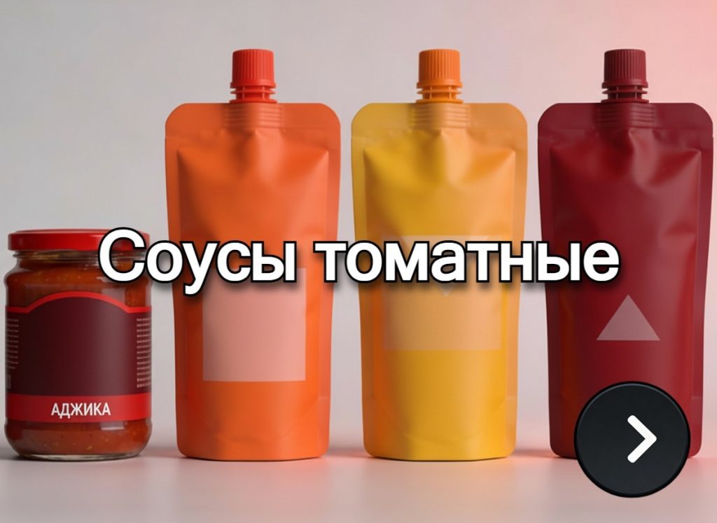 Томатные соусы и кетчупы включают классические, острые и сладкие варианты с плотностью до 30% сухих веществ — идеальны для пиццерий, бургерных и шашлыков.
