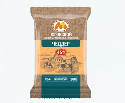 Сыр полутвердый Чеддер 45%, 200г брикет